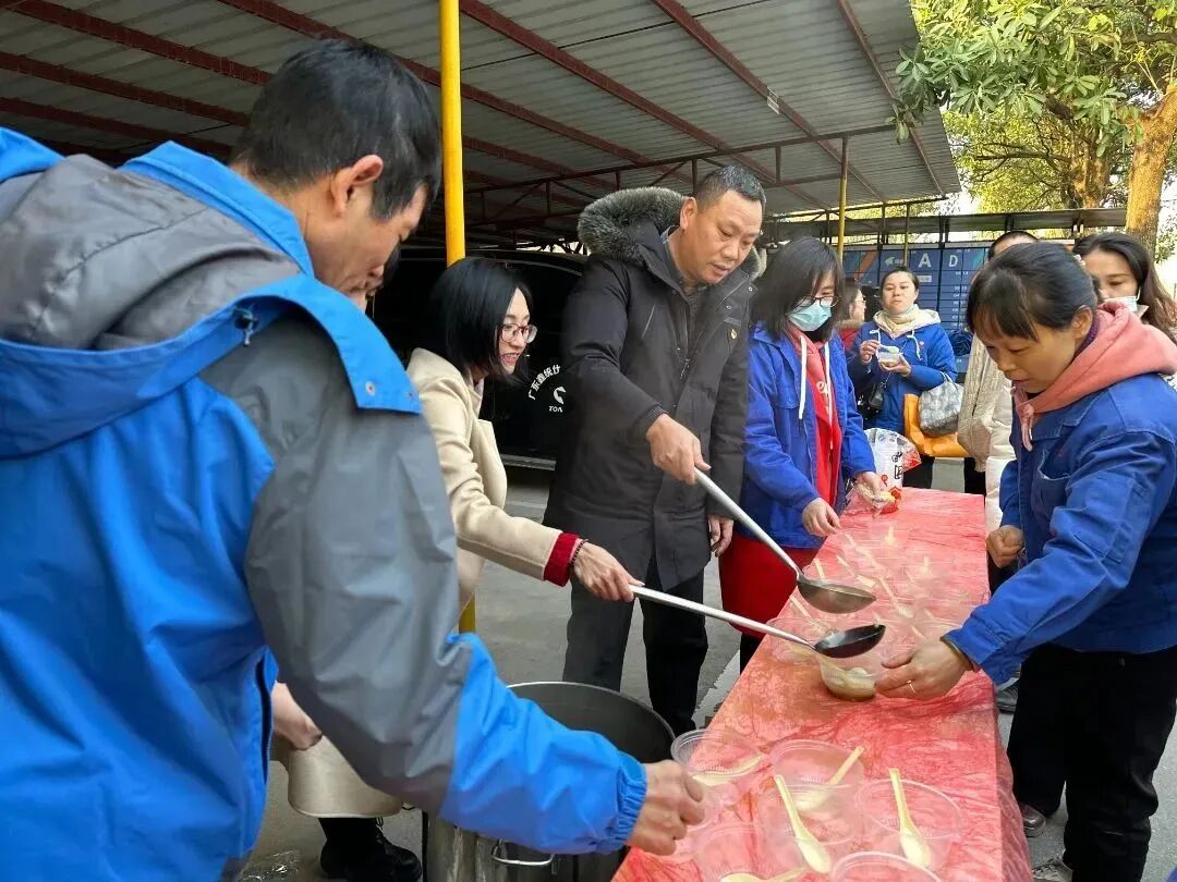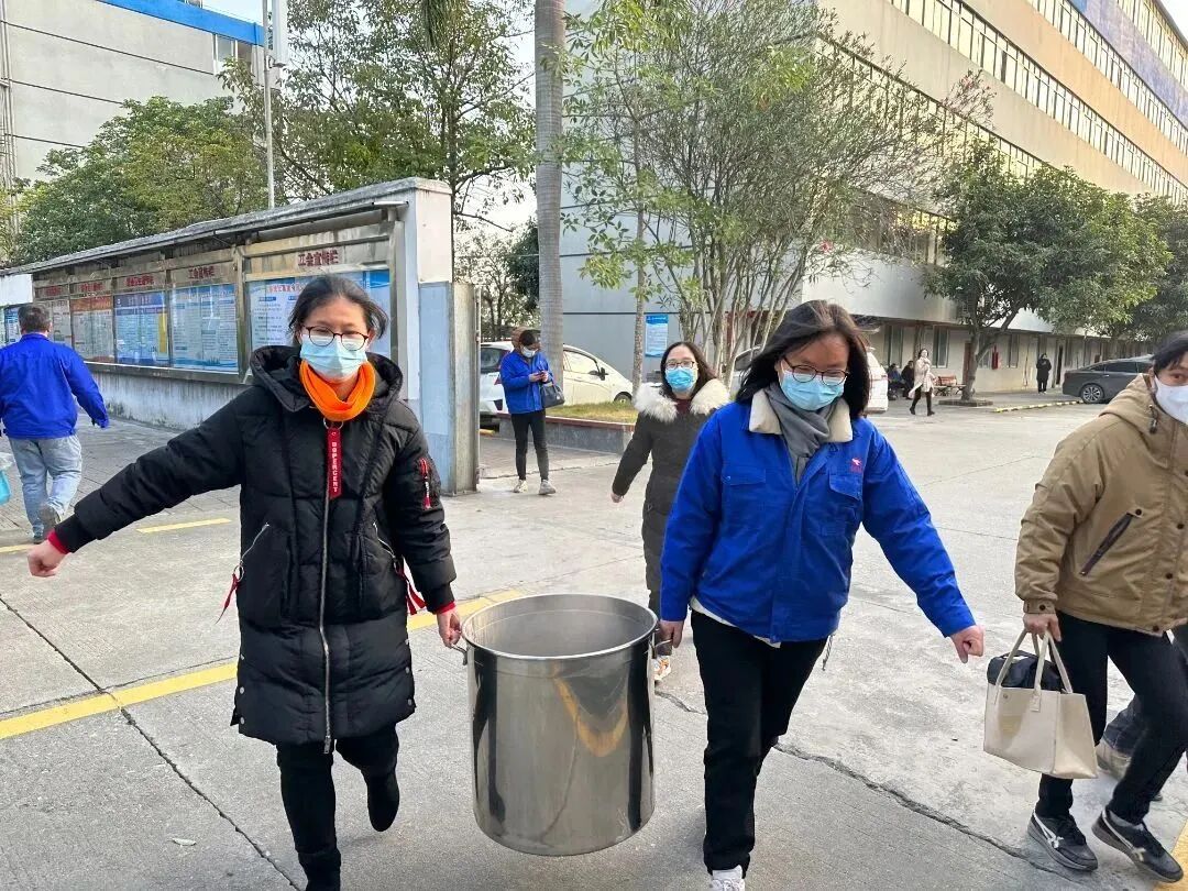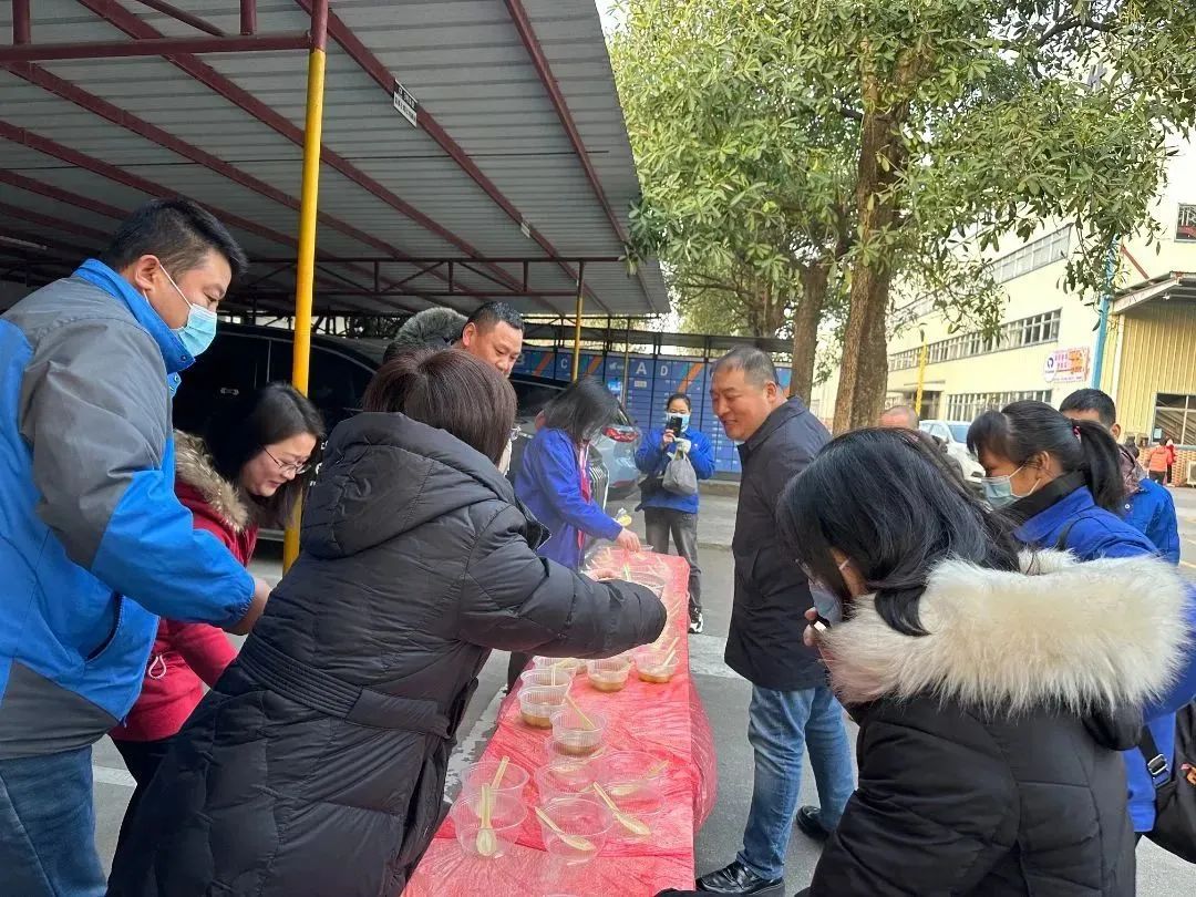 12月22日是中国传统的节日“冬至”。鑫统仕集团旗下广东、湖南、江苏基地的分、子公司,由党支部、工会、团支部、妇联、关工委等社团成员组成的志愿者服务队,在冬日清晨,为员工送上暖心的汤圆。