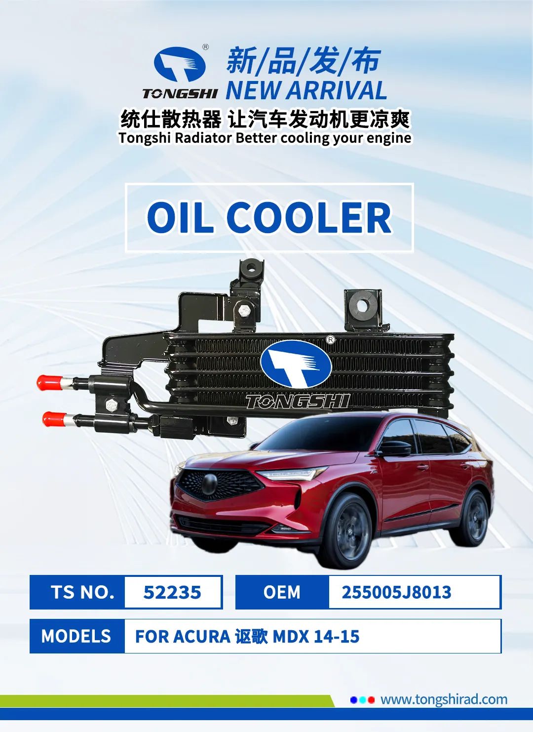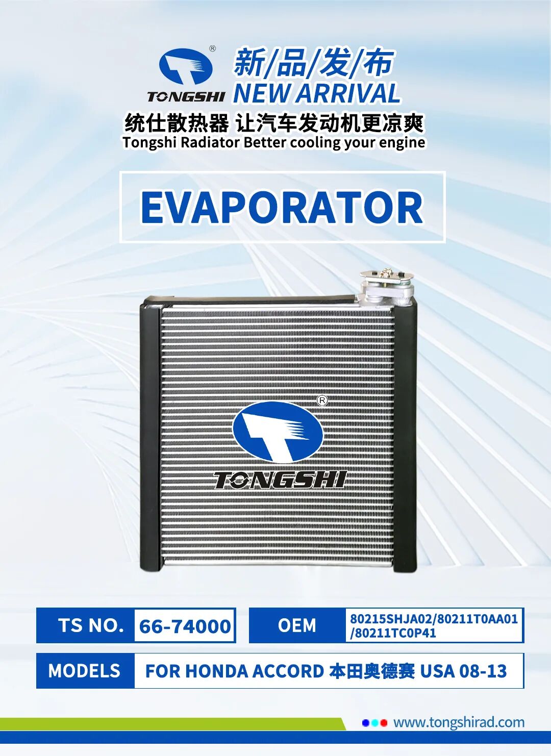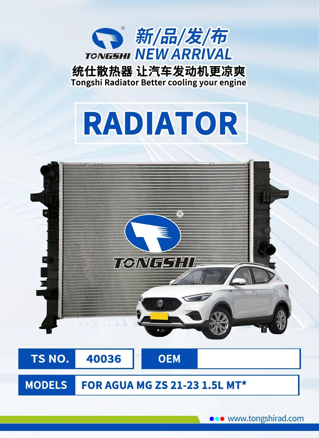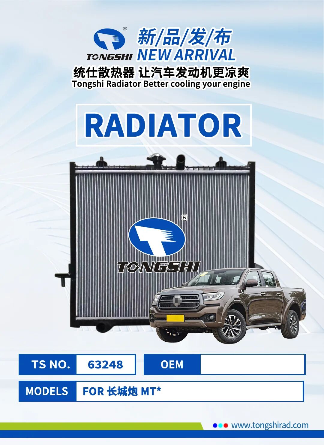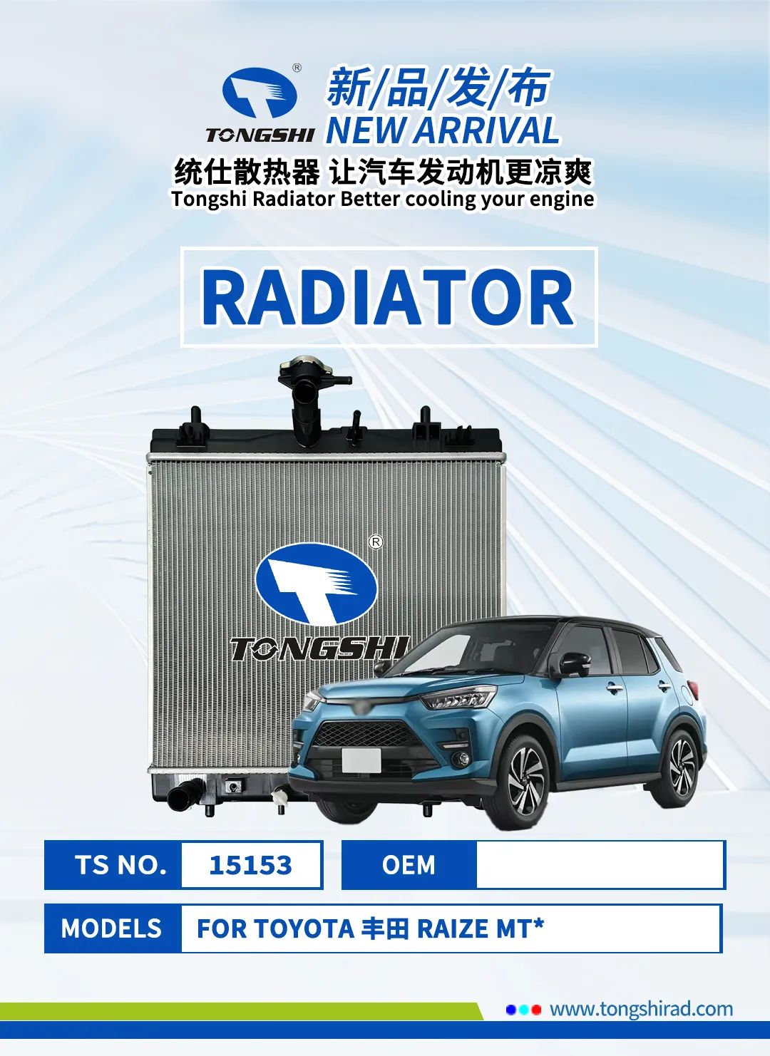 以下是鑫统仕集团2024年5月部分新品清单,新品汽车散热器适用于丰田、本田、日产、长城等品牌,有兴趣的客户朋友可登录鑫统仕集团官网平台http://www.tongshirad.com/自行选购,或联系我们的业务代表下单,感谢您的关注与支持!