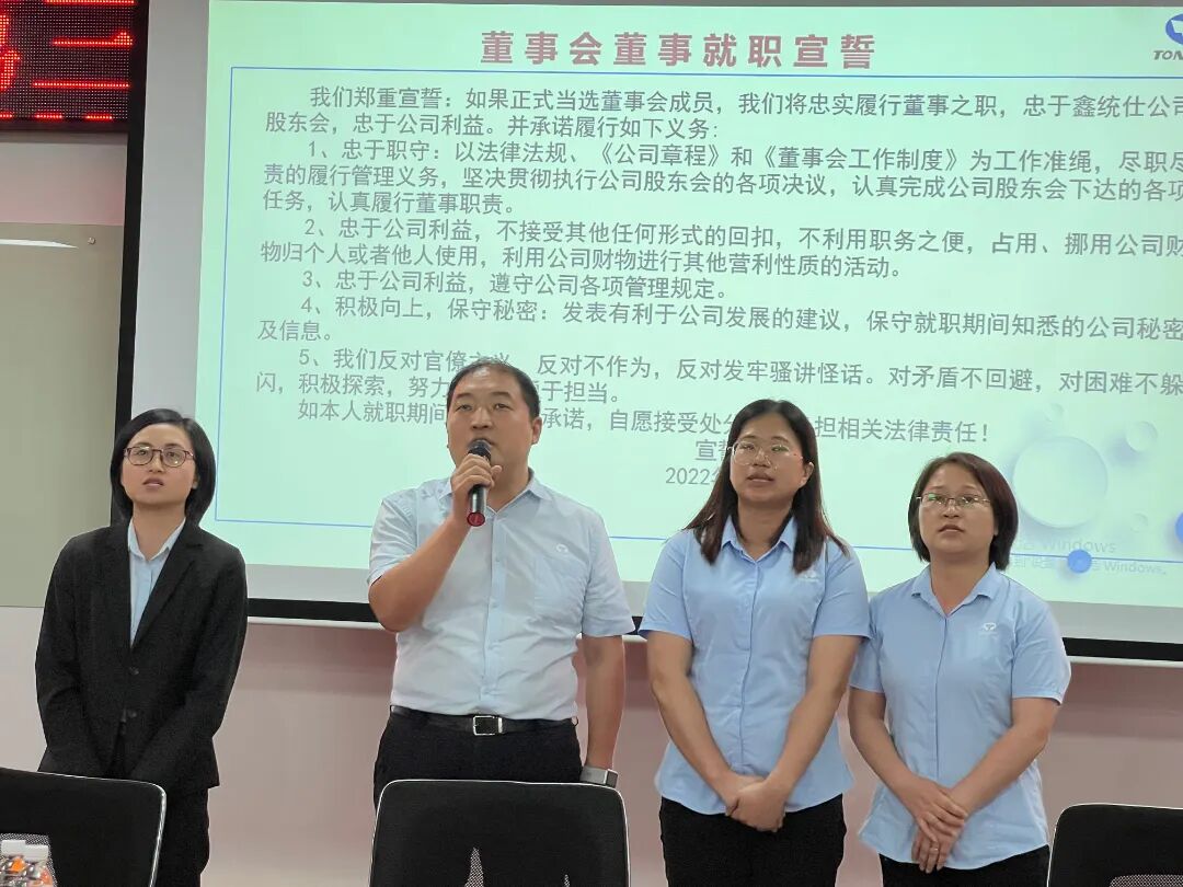 当选的董事会、监事会成员表示,深感使命光荣、责任重大,一定不会辜负全体股东和职工的厚望,围绕2023-2025的发展规划,认真履职,勤勉尽责,不懈奋斗,在面对新形势新任务新要求新挑战,继续以昂扬的斗志和饱满的激情,凝聚一切勇气和力量,奋力开拓鑫统仕高质量发展新征程。