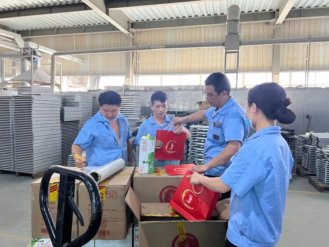 在派发现场,员工喜悦之情溢于言表,每一份中秋福利均代表着美好的祝愿,传递着鑫统仕对员工的关爱,公司沉甸甸的心意给员工带来了欢笑,也给员工带来了满满的幸福感。